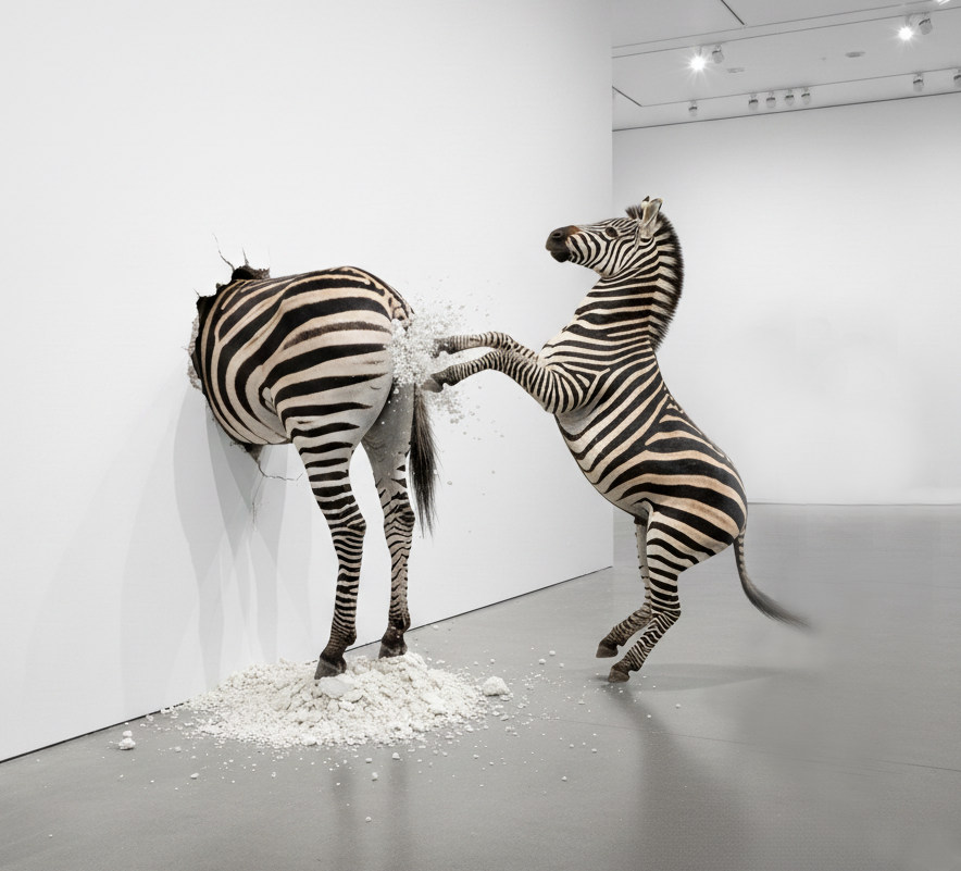 Conceptual Proposals for Maurizio CattelanThis exhibition is a critical experiment in the provocative language that defines much of contemporary art, and the work of Maurizio Cattelan in particular. Rather than imitating or judging, the aim is to reveal the invisible structure of provocation, which is built not on meaning, but on the ability to capture and monopolise attention . The original works on display are intentionally minimalist, designed to reproduce the grammar of pure provocation with almost surgical precision: simple gestures, absent messages and maximum visual impact. In this sense, the exhibition is not merely a sequence of images, but rather an ironic yet rigorous magnifying glass on a way of making art that exists in the tension between gesture and spectacle. Perhaps the real provocation no longer lies in causing scandal, but in demonstrating how easily it can be produced. |